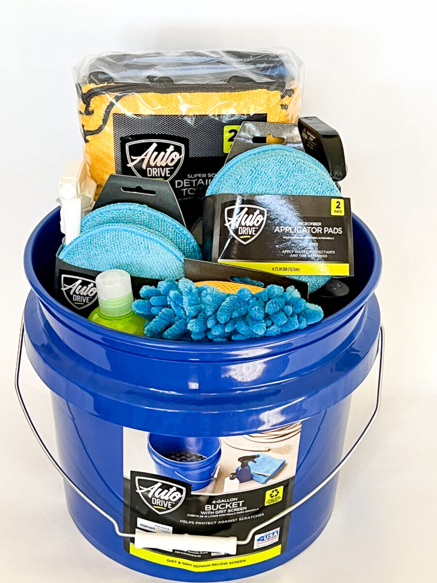 This “Auto Spa” basket uses a wash bucket to hold all the goodies this car lover likes to use to wash his cars.