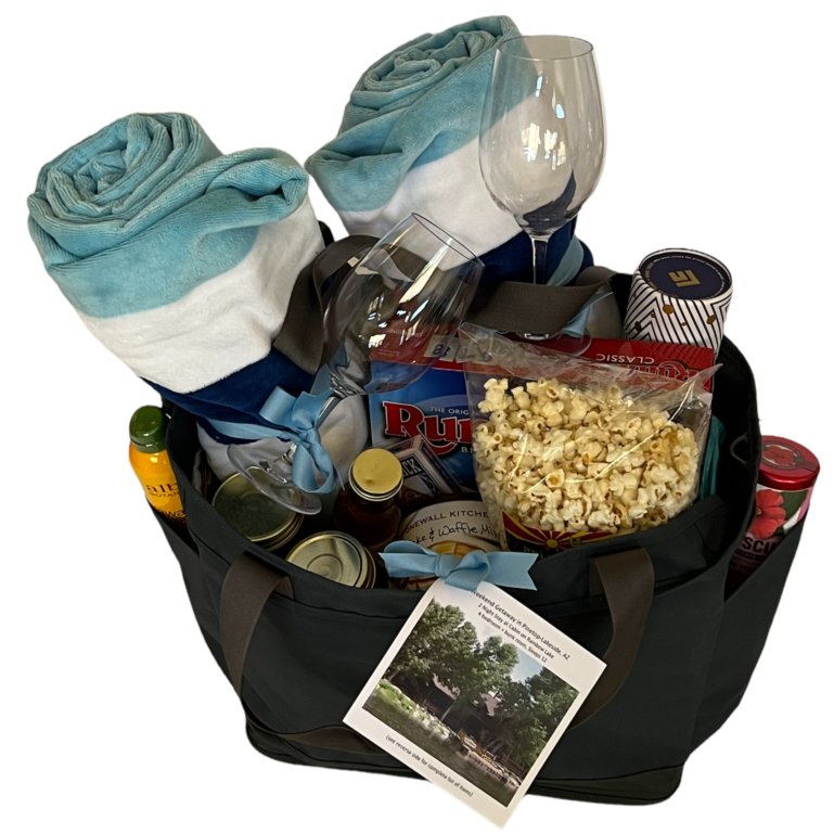 Tote bags are great options for packing towels, sunscreen, snacks and everything you need for a “Day at the Beach” basket. Fill a tote with a soft robe, shower slippers, lotion and essential oils for a “Spa Day” basket. A backpack or duffel bag filled with water bottles, sports drink mix, sweat towels, and a gym membership is perfect for a “Fab Fitness” basket.